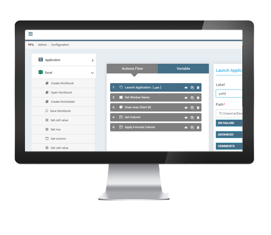 Deploy RPA at enterprise scale. Manage any variety and any number of processes from front to back-office regardless of complexity.